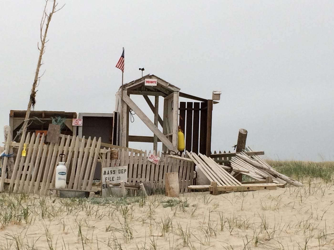 I’ll leave you with a community construction that appears and then disappears on South Beach in Chatham on the Cape. Some years there will be no remains (maybe discouraged by the town, or a storm took it back). Then it will reappear, morphed, in a different spot. Don’t you love the “keep off the grass” sign.