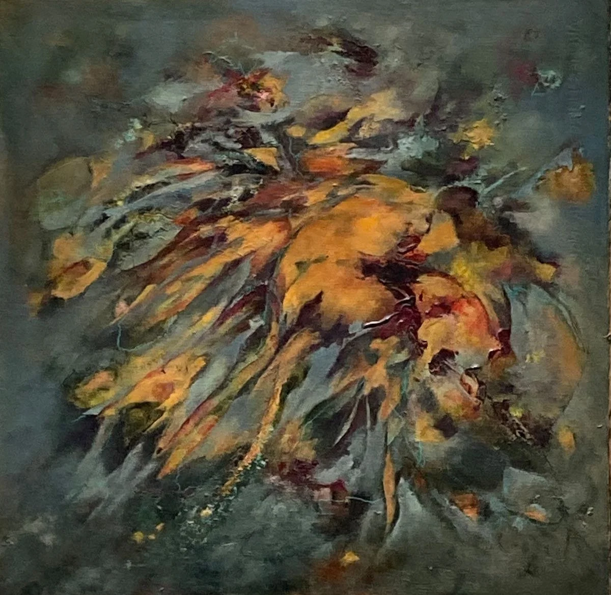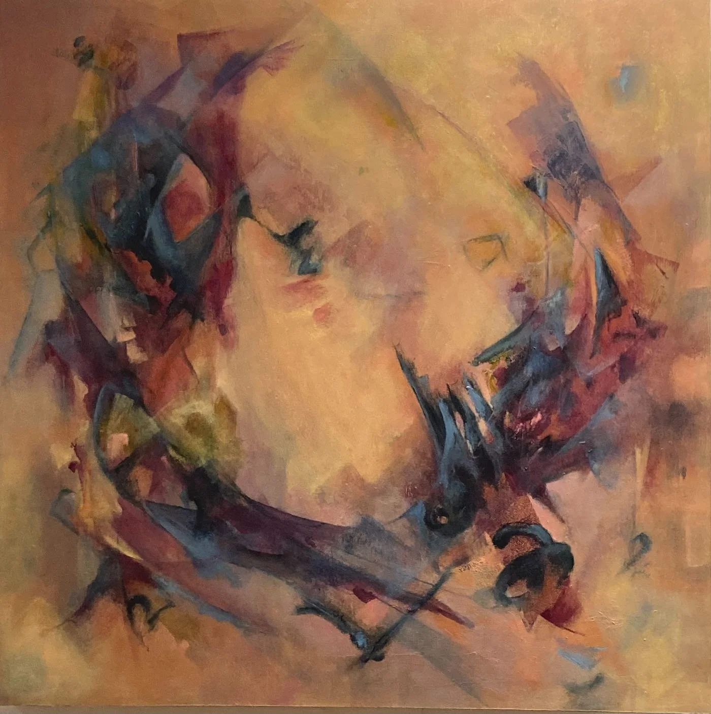 42-2021, Acrylic & oil on wooden panel, 12” x 12”, framed, $330