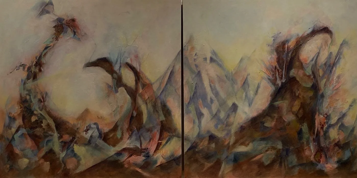 64-2022, Oil on two cradled wooden panels, 36” x 72” x 1.6”, $2800