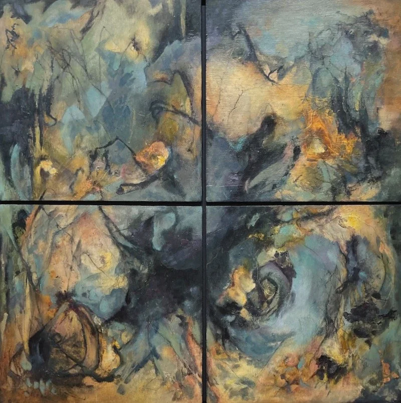 61-2021, Oil on four wooden panels, 24” x 24”, framed, $945